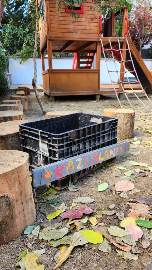 Koşan Kaplumbağa’nın ismi, açıldığı yıl çocuklarla gerçekleştirilen bir atölye sonunda onların kararıyla verilmiştir. İsmin ruhuna uygun olarak, okulumuz çocukların hayal gücüne alan tanır ve doğayla bağlarını güçlendiren geniş bir bahçeye sahiptir. Bahçemizde bostan ve kompost alanı bulunur; burada çocuklar toprağı deneyimleyerek öğrenirler.